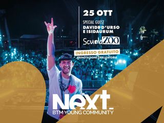 La serata continuerà, dalle 21:00, con un DJ set firmato ScuolaZoo. Durante la serata verrà presentato ufficialmente il progetto Next - BTM Young Community, nato per promuovere la partecipazione dei giovani e il loro ruolo attivo nello sviluppo del territorio.