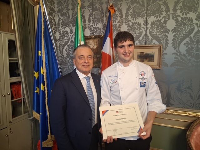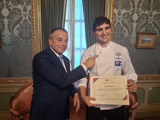 “Bravo Andrea - ha concluso il vicepresidente del Consiglio regionale Franco Graglia - sei un grande chef ed un ottimo ragazzo. La tua maturità va di pari passo con la tua professionalità e spero che la pergamena che ti ho consegnato a nome del Consiglio regionale, ti porti fortuna per volare sempre più in alto, fin dove desideri”.
