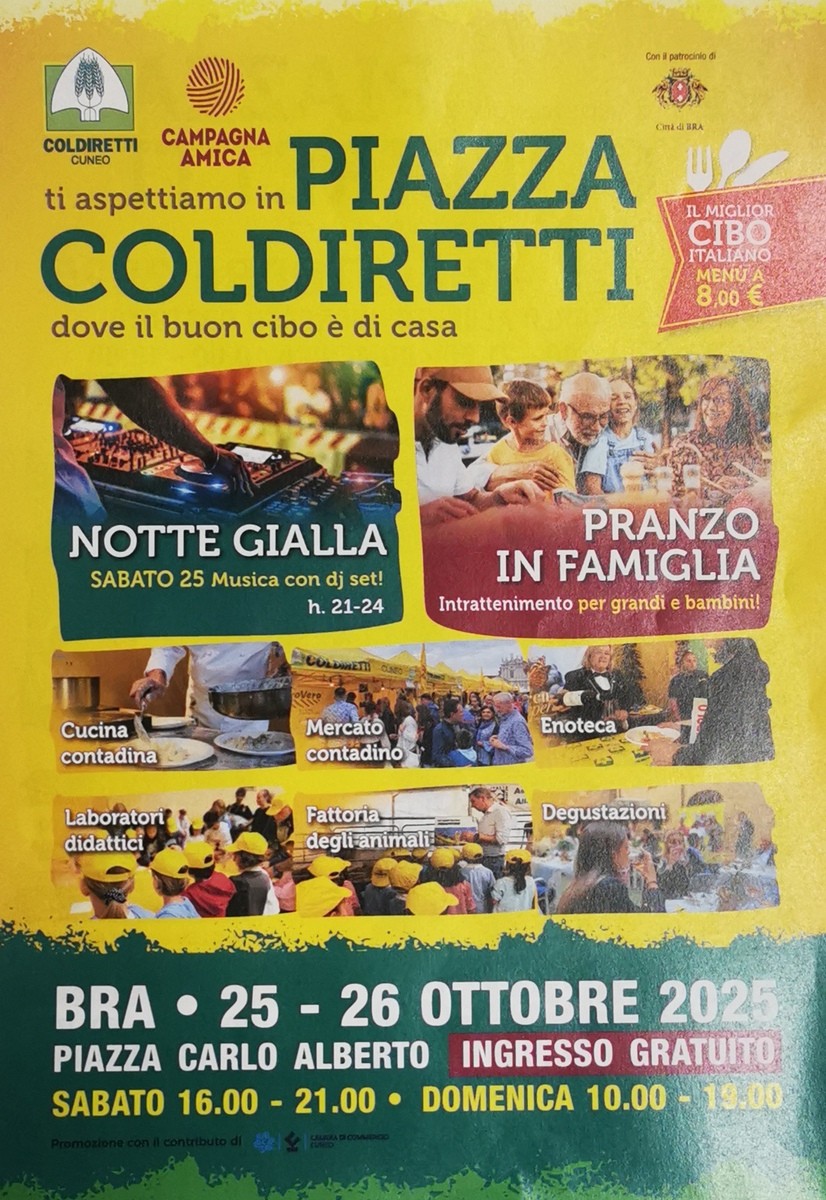Manca poco all'evento "Piazza Coldiretti", in programma nel fine settimana in Piazza Carlo Alberto a Bra.