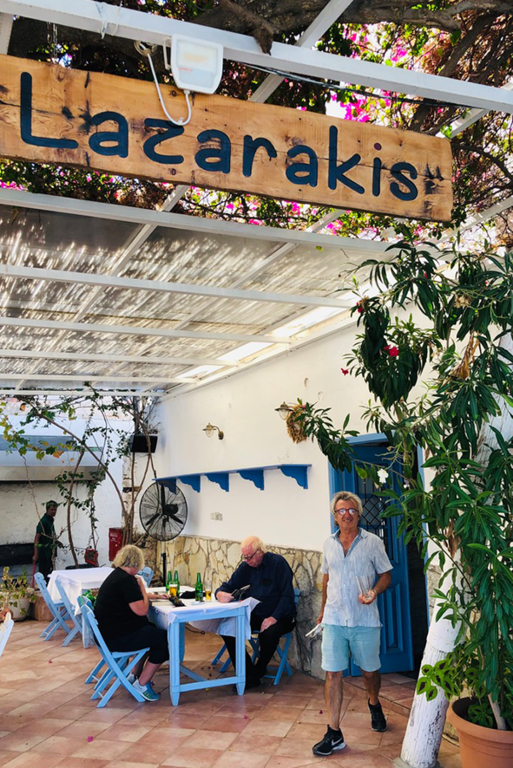 Il porto è la lente attraverso cui tutto si legge. Le imbarcazioni oscillano in un movimento continuo, e il Meltemi — vento caldo dell’Egeo — regala leggerezza ai pensieri. Le sedie rivolte al mare puntano tutte nella stessa direzione, come se l’isola avesse un’unica via di fuga: l’orizzonte. Una viaggiatrice sola, a un tavolo un po’ defilato, osserva in silenzio. Qui si guarda più di quanto si parli. Un uomo apparecchia i tavoli di una taverna: si muove piano, con la calma di chi conosce il valore del tempo e non gli oppone resistenza. Quando si ferma, accenna un sorriso e dice soltanto: «Qui non cambia nulla, è questo il bello». Non aggiunge altro. È abbastanza. In quella frase si condensa la filosofia del luogo: non accelerare, non fingere, non essere altro rispetto a ciò che si è. Il pesce, in tavola, arriva quasi senza mediazioni. Crudo o appena scottato, con olio, limone e capperi carnosi. Il resto è vento e pane da scarpetta. Non c’è scenografia, non c’è narrazione di supporto: si mangia guardando il mare e lasciando che sia il piatto a parlare. Nell’ora di pranzo, Kastellorizo riduce tutto a pochi gesti essenziali.