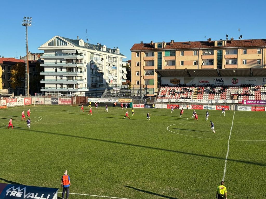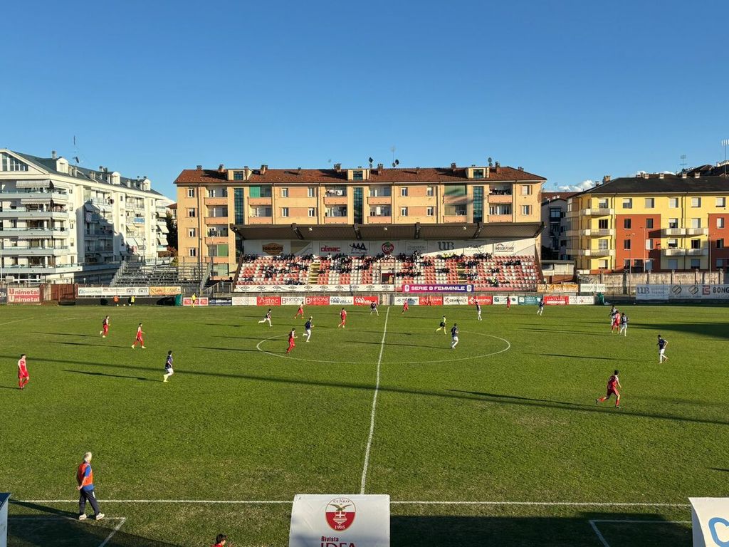 Fischio d’inizio alle ore 14:34 allo stadio “Fratelli Paschiero”. Padroni di casa in maglia blu e pantaloncini bianchi mentre gli ospiti con la divisa rossa.