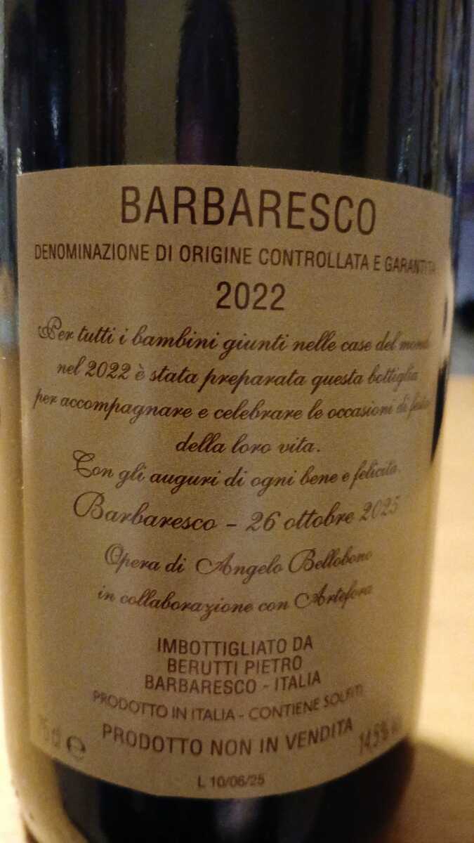 “Con gli auguri di ogni bene e felicità”. È questa una delle frasi che il sindaco di Barbaresco Mario Zoppi e la sua amministrazione hanno voluto stampare sull’etichetta della bottiglia di Barbaresco donata a tutti i bambini nati nel 2022. Un’etichetta speciale e personalizzata, che quest’anno è stata realizzata da Angelo Bellobono.