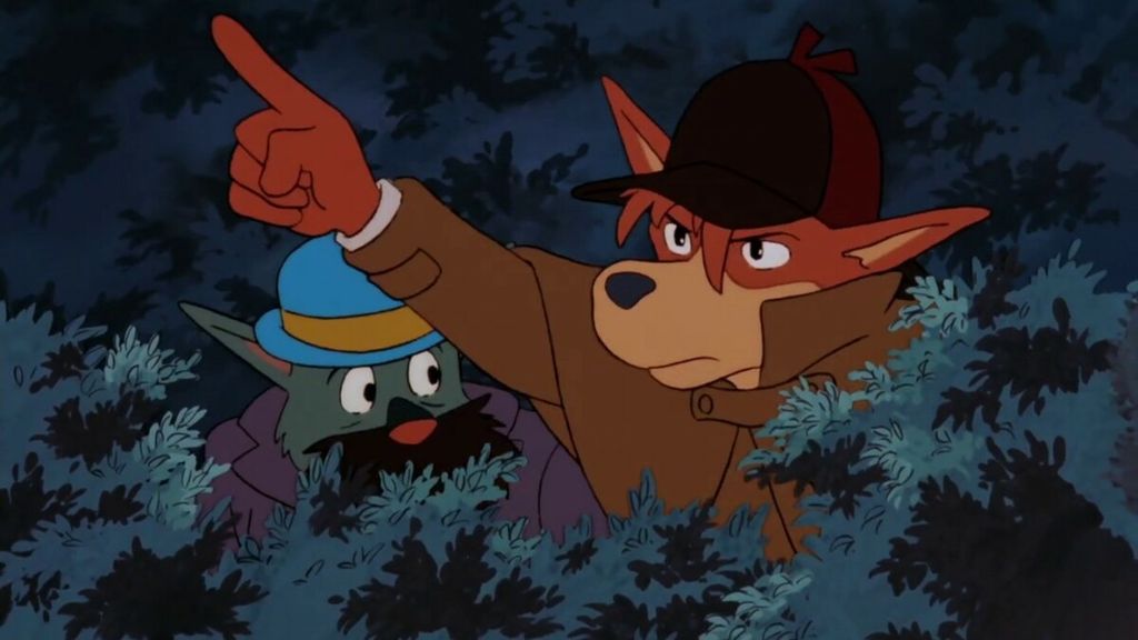 Ambientato in una Londra popolata da personaggi con sembianze canine, “Il fiuto di Sherlock Holmes” segue le avventure del celebre detective (lui in realtà ha l’aspetto di una volpe) e del suo fidato Watson contro il genio del male Moriarty. Solo sei episodi portano la firma diretta di Miyazaki, ma in tutta la serie si ritrovano molte delle sue future cifre stilistiche: inseguimenti spettacolari, voli rocamboleschi e personaggi femminili forti. La struttura fondante della trama è invece basata sullo Sherlock classico; il carattere dei personaggi, i loro rapporti, le ambientazioni e le atmosfere riprendono quelli delle storie originali di Conan Doyle. Anche gli spunti dei casi da affrontare richiamano i celeberrimi libri scritti dal creatore del detective.