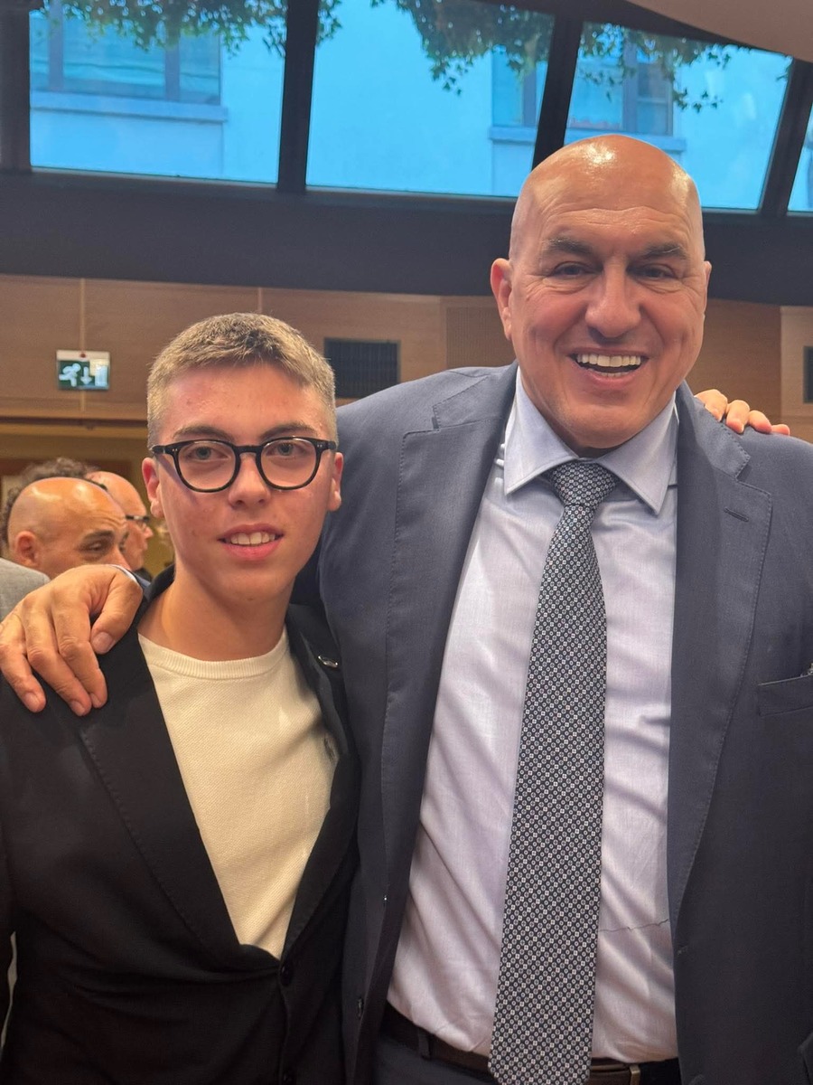 (Sopra Giovanni Caligaris, del circolo saluzzese di Gioventù Nazionale, col ministro della Difesa Guido Crosetto)