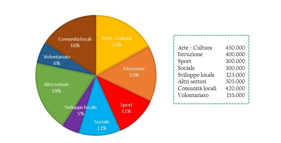 Confermati dunque i settori rilevanti nei quali operare: Arte/cultura, Istruzione, Sport, Sociale e Sviluppo locale.