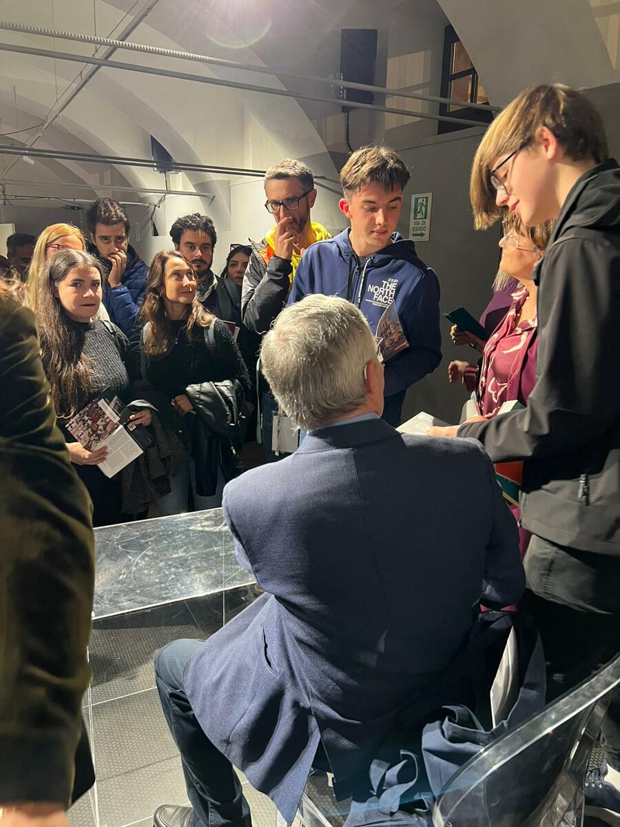 La giornata si è conclusa in bellezza con un momento particolarmente emozionante: l’incontro con il professor Alessandro Barbero, che con grande disponibilità ci ha concesso autografi e una foto di gruppo, riservata solo a noi vincitori del contest.