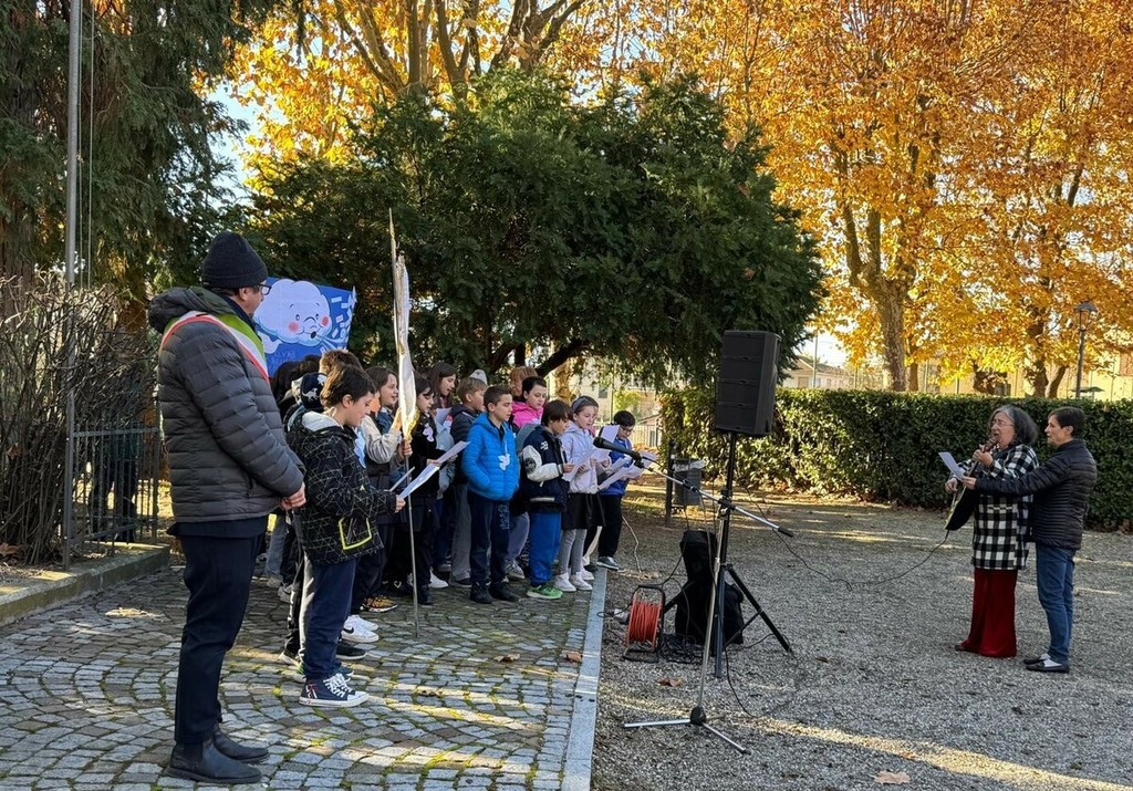 I ragazzi della scuola primaria e secondaria hanno partecipato attivamente alla cerimonia. Propria la primaria accompagnata con la chitarra dalla loro insegnante, ha cantato “Blowin'in the wind”, di Bob Dylan, mentre i ragazzi della scuola secondaria hanno letto dei brani molto toccanti sul tema dei caduti al fronte.