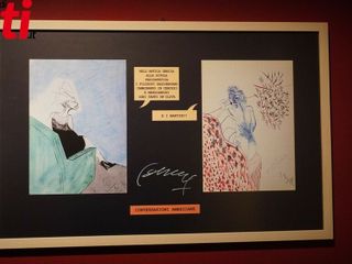 Un nucleo fondamentale è dedicato alla selezione di tavole tratte da Razmataz, l'imponente opera (oltre 1.800 tavole) interamente scritta, musicata e disegnata da Conte. Ambientata nella Parigi vitale degli anni Venti, celebra l'arrivo della "giovane musica americana, il jazz", in un periodo che l'artista descrive come "carico per me di sensualità".
