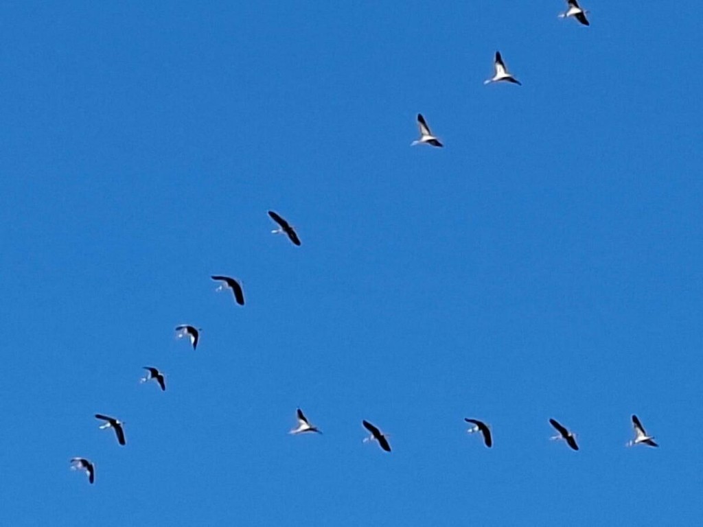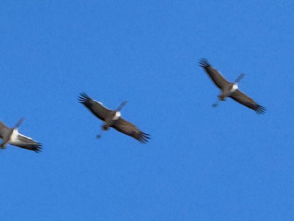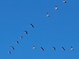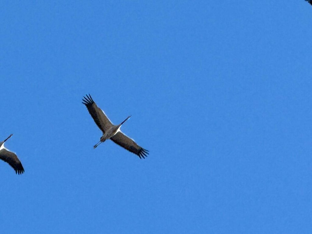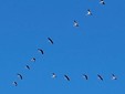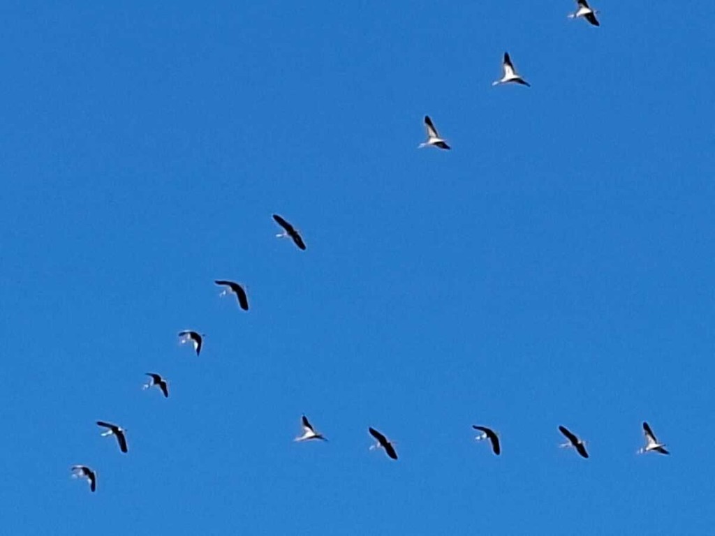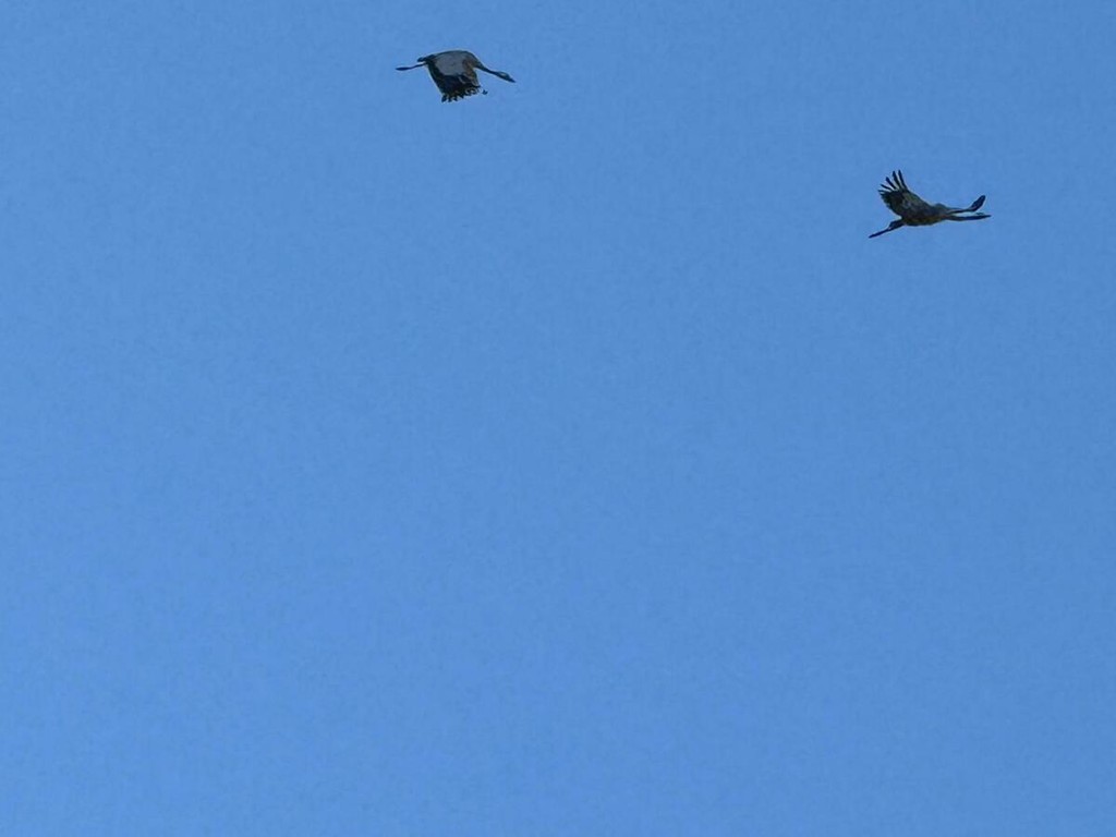 Le gru cenerine migrano in grandi gruppi formando una "V" durante il loro volo. In questo periodo, visto l'imminente inverno, sono dirette verso sud .