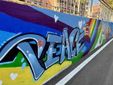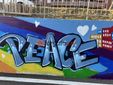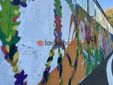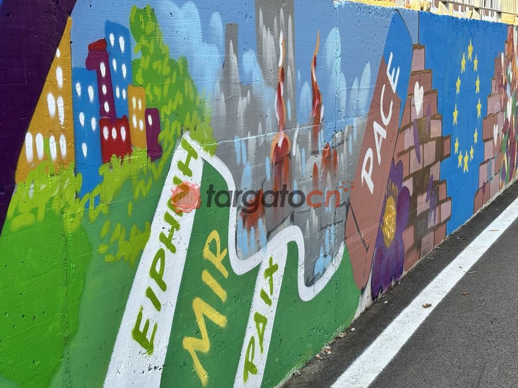 L'opera, inaugurata oggi, è un'esplosione di colori, dove campeggia il simbolo della pace, ricordata nelle quattro lingue dei paesi gemellati, insieme a fiori, volti di giovani e una gomma che invita a "cancellare" i conflitti.