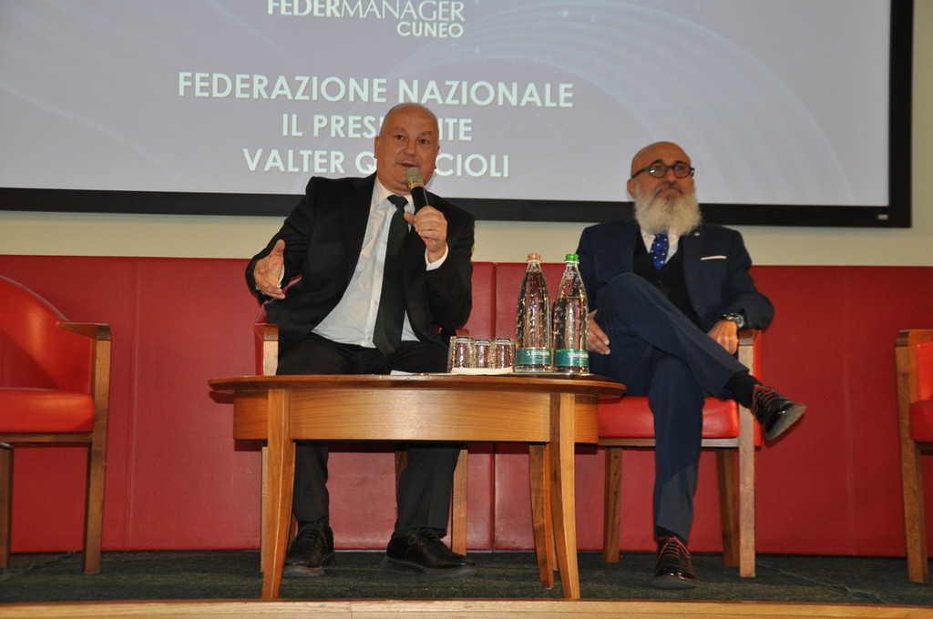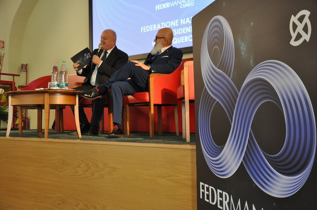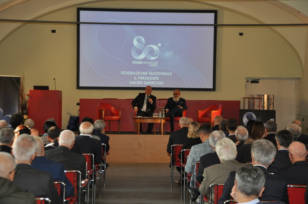 “Lo scorso 19 novembre, durante la nostra assemblea nazionale, abbiamo lanciato l’idea del di un piano straordinario per managerializzare 20mila piccole medie imprese nell’arco dei prossimi 10 anni. Soltanto il 5% del tessuto industriale italiano è dotato oggi di una struttura manageriale. Lavoreremo con il governo affinché tante imprese italiane che vogliono e possono crescere, siano incoraggiate a farlo e accompagnate da una struttura manageriale al loro interno. Il costo stimato è di 8-10 miliardi in 10 anni e andrà a favore di 20mila imprese che renderanno ancora più forte l’Italia nel mondo. Siamo tuttora la seconda manifattura in Europa dietro alla Germania e il quarto esportatore mondiale: con questi investimenti potremo scalare la classifica. Tra i nostri compiti c’è la promozione delle competenze dei manager, grazie alla nostra Academy che ha messo a punto una serie di programmi, anche on-line, utili alla formazione di dirigenti preparati e aggiornati. Devo complimentarmi per la celebrazione degli 80 anni qui nel cuneese, in un territorio che esprime un’ottima sinergia con la Federazione nazionale”