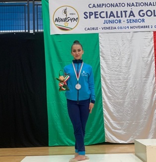 Per Arianna si tratta della terza partecipazione consecutiva a una finale nazionale di Specialità Gold. Anche quest’anno ha confermato il suo valore, confermando il titolo di Vicecampionessa Italiana alla palla, attrezzo col quale era già salita sul podio anche nelle due edizioni precedenti. La sua esecuzione, precisa e armoniosa oltre che dall’alto coefficiente di difficoltà, ha incantato pubblico e giuria, premiando il lavoro e la costanza di questi anni.