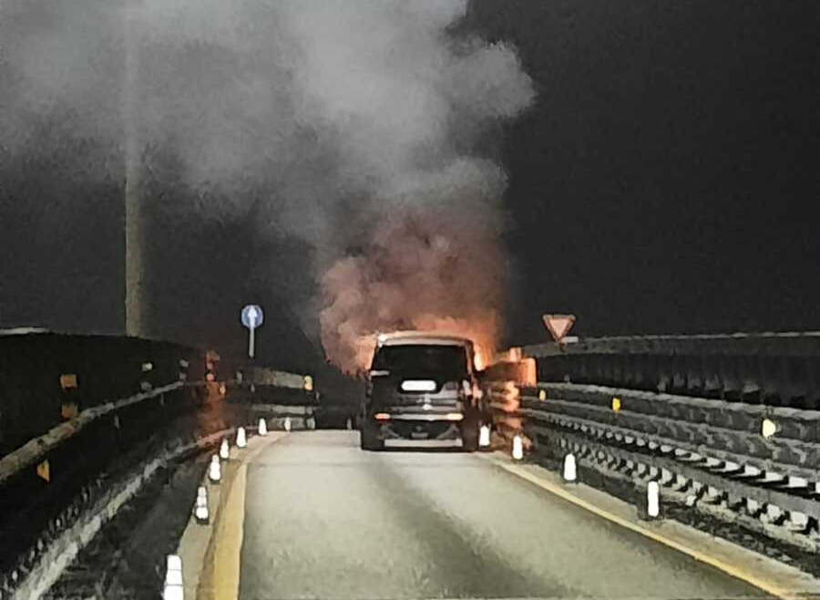 Da chiarire le cause del rogo. Non si registrano feriti, ma solo danni all’autovettura e disagi alla circolazione, contenuta considerato l’orario serale.