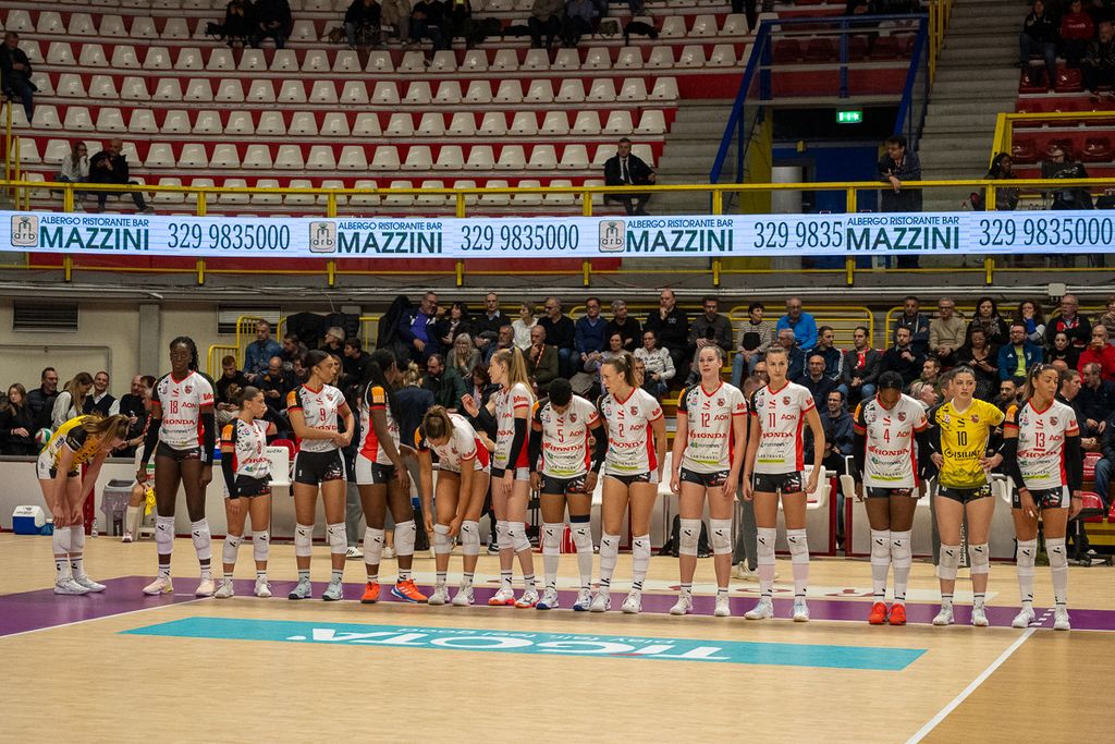 Per la formazione di Salvagni non una serata facile, con Pritchard e Marring out e Martinez che si infortuna sul 18-17 nel secondo set, quando scendendo da un salto atterra male sul ginocchio ed è costretta a uscire dal campo in barella.
