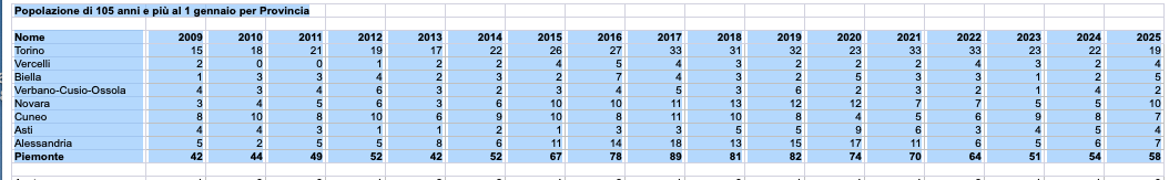 In totale, in provincia di Cuneo sono sette gli abitanti che hanno superato i 105 anni. In Piemonte sono 58.
