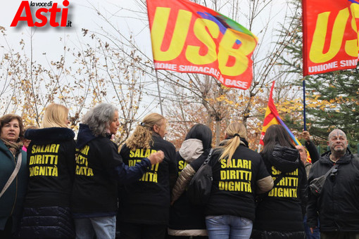 "Salario, diritti, dignità". Questo lo slogan fatto proprio dalla trentina di lavoratrici della Proteco Srl che questa mattina, 14 novembre, hanno preso parte alla protesta sindacale tenuta di fronte al Tribunale di Asti.