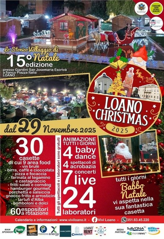 L’attesa atmosfera natalizia torna a illuminare i Giardini San Josemaria Escrivá, accanto a Piazza Italia, con la 15ª edizione dello Storico Villaggio di Natale di Loano, uno degli appuntamenti più amati della Riviera. L’anteprima dell’evento, intitolata “Giro Tavola all’Italiana”, si terrà sabato 29 e domenica 30 novembre 2025, dalle 10:00 alle 19:00, e sarà interamente dedicata al gusto e alle tradizioni regionali.