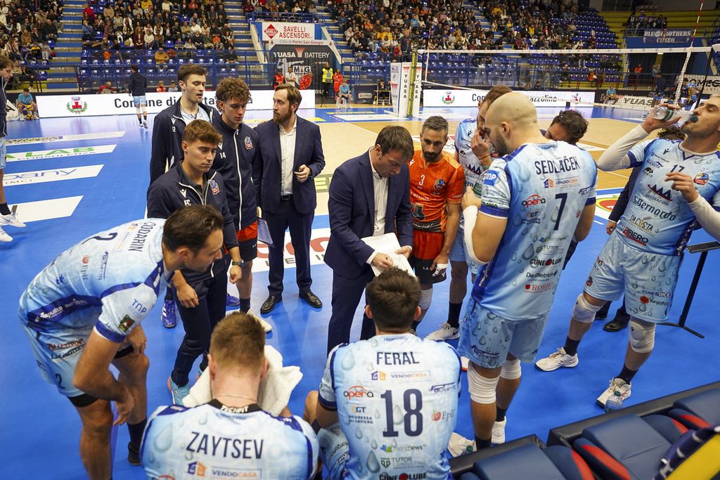 Legge la partita con lucidità e mantiene la squadra dentro ogni situazione complicata. Ottima gestione del videocheck. La gestione dei cambi si rivela efficace (Copelli e Oberto danno un contributo immediato), mentre l’identità tattica è chiara: pressione costante al servizio, ordine in ricezione e scelte offensive coraggiose.