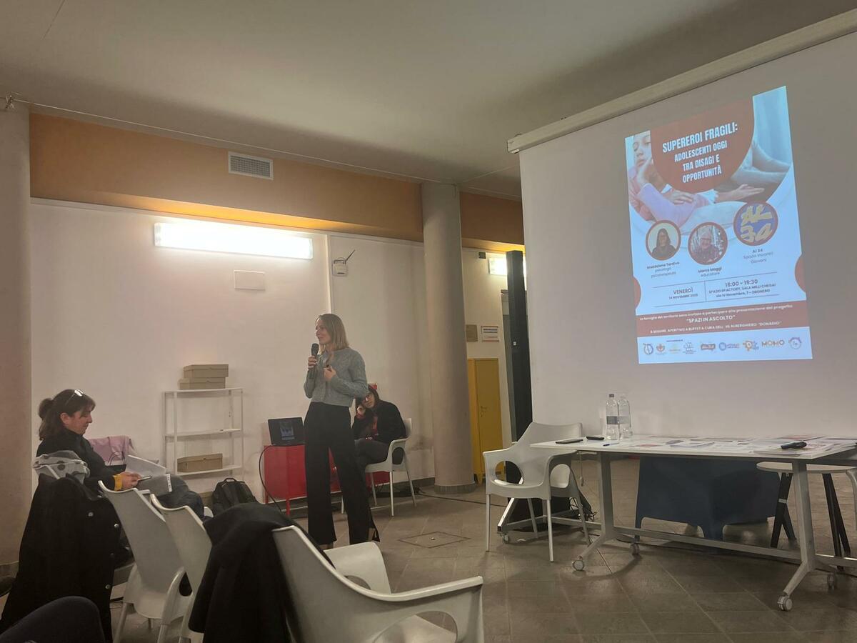 Venerdì scorso 14 novembre, nella Sala Milli Chegai di Dronero, si è svolto l’incontro “Supereroi Fragili: adolescenti oggi tra disagi e opportunità”, che ha visto la partecipazione di famiglie, docenti e rappresentanti degli enti partner del progetto "Spazi in Ascolto", sostenuto da Fondazione CRC di Cuneo su Bando “Impegnati nei diritti”.