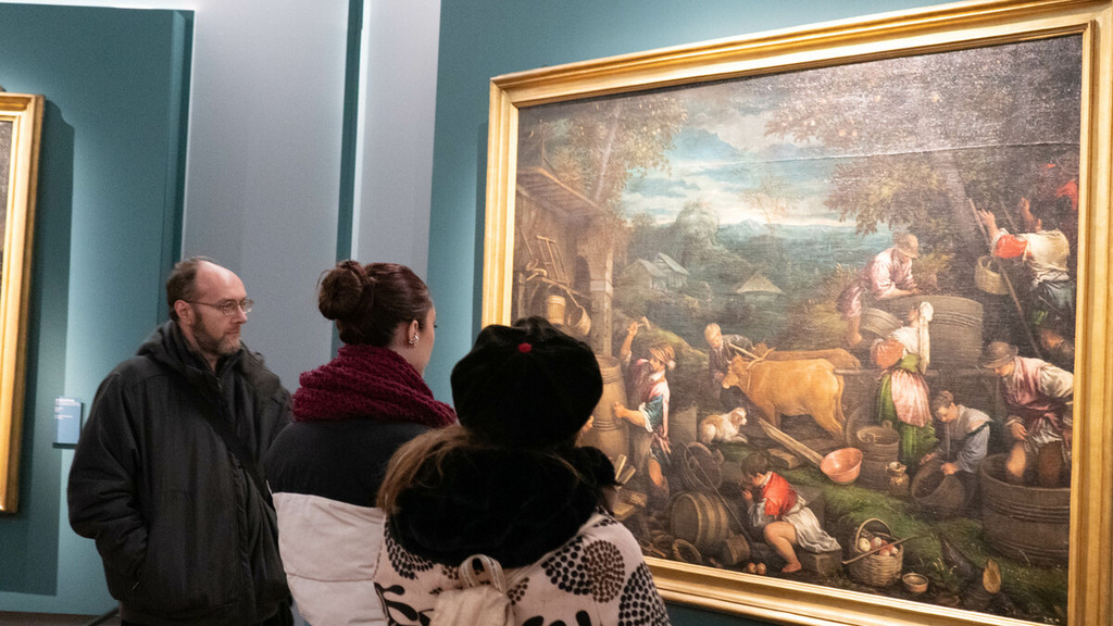 L'esposizione, curata da Francesca Cappelletti ed Ettore Giovanati e allestita nel rispetto di principi di sostenibilità ambientale grazie al progetto dell'architetto Loredana Iacopino, rimarrà aperta fino al 29 marzo 2026. I visitatori potranno ammirare capolavori raramente esposti, tra cui il Ritratto di frate domenicano di Tiziano Vecellio, le opere Autunno e Primavera di Jacopo Bassano, il Ritratto di uomo attribuito a Raffaello, la Sacra Famiglia con san Giovanni Battista e angeli di Battista Dossi, la Fuga in Egitto del Cavalier d'Arpino e il Sonno di Gesù di Lavinia Fontana. La mostra culmina con i grandi maestri del Barocco, tra cui la Danza campestre di Guido Reni e l'Autoritratto in età matura insieme alla Capra Amaltea di Gian Lorenzo Bernini.