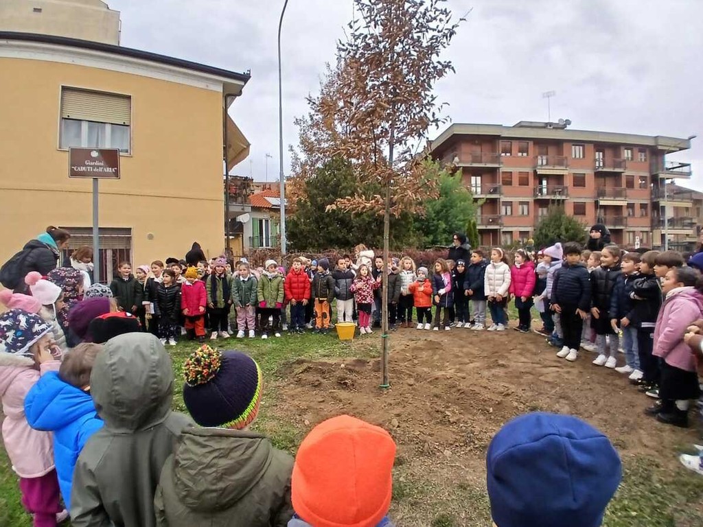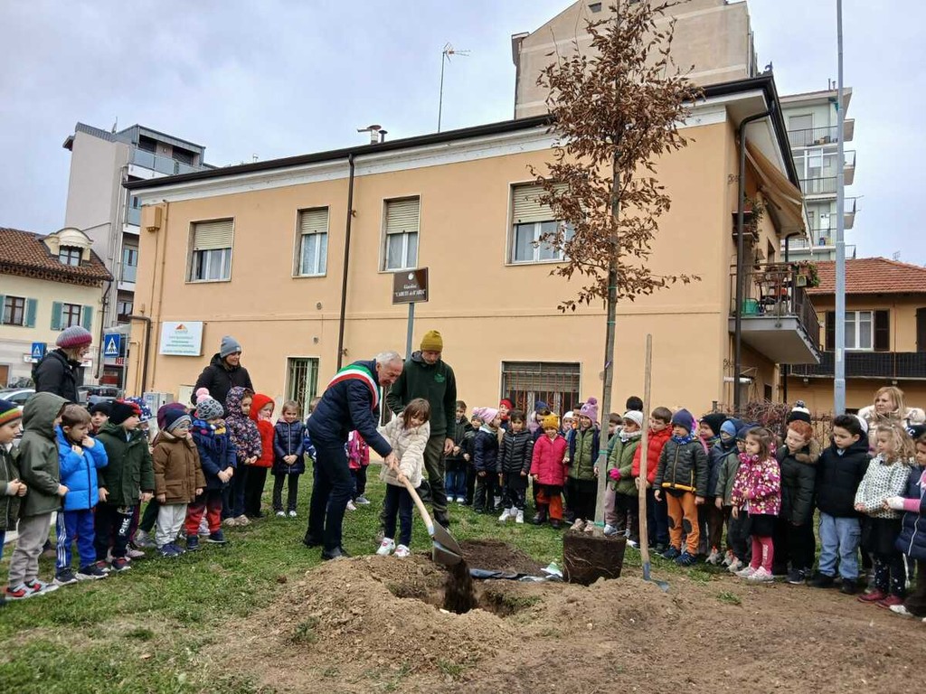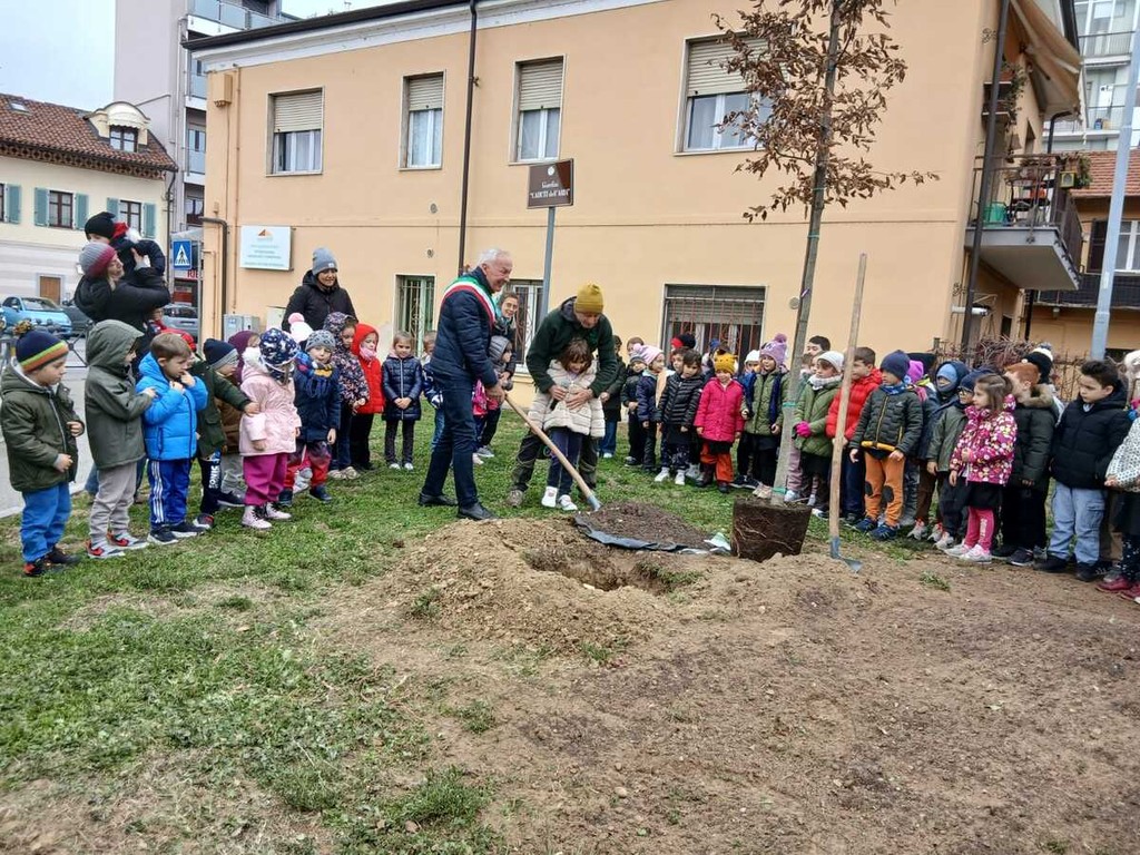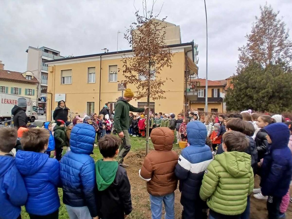 La piantumazione a Saluzzo, azione di forestazione urbana che si congiunge alle altre iniziative in 14 regioni italiane, ha visto in prima fila il sindaco, coadiuvato, in un clima di entusiasmo, dai piccoli alunni - giardinieri in erba.