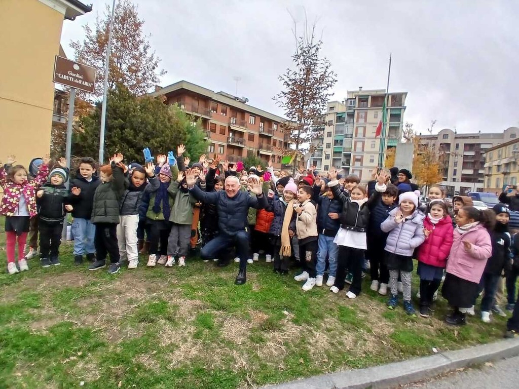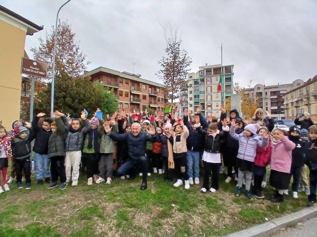 Messaggi di “benvenuto” al carpino, scritti dai bambini della scuola Pivano e dell’Infanzia Regina Margherita, sono appesi da oggi sui rami della pianta, messa a dimora questa mattina ( venerdì 21 novembre) a lato del monumento dedicato ai Caduti dell’aria, in corso IV Novembre.