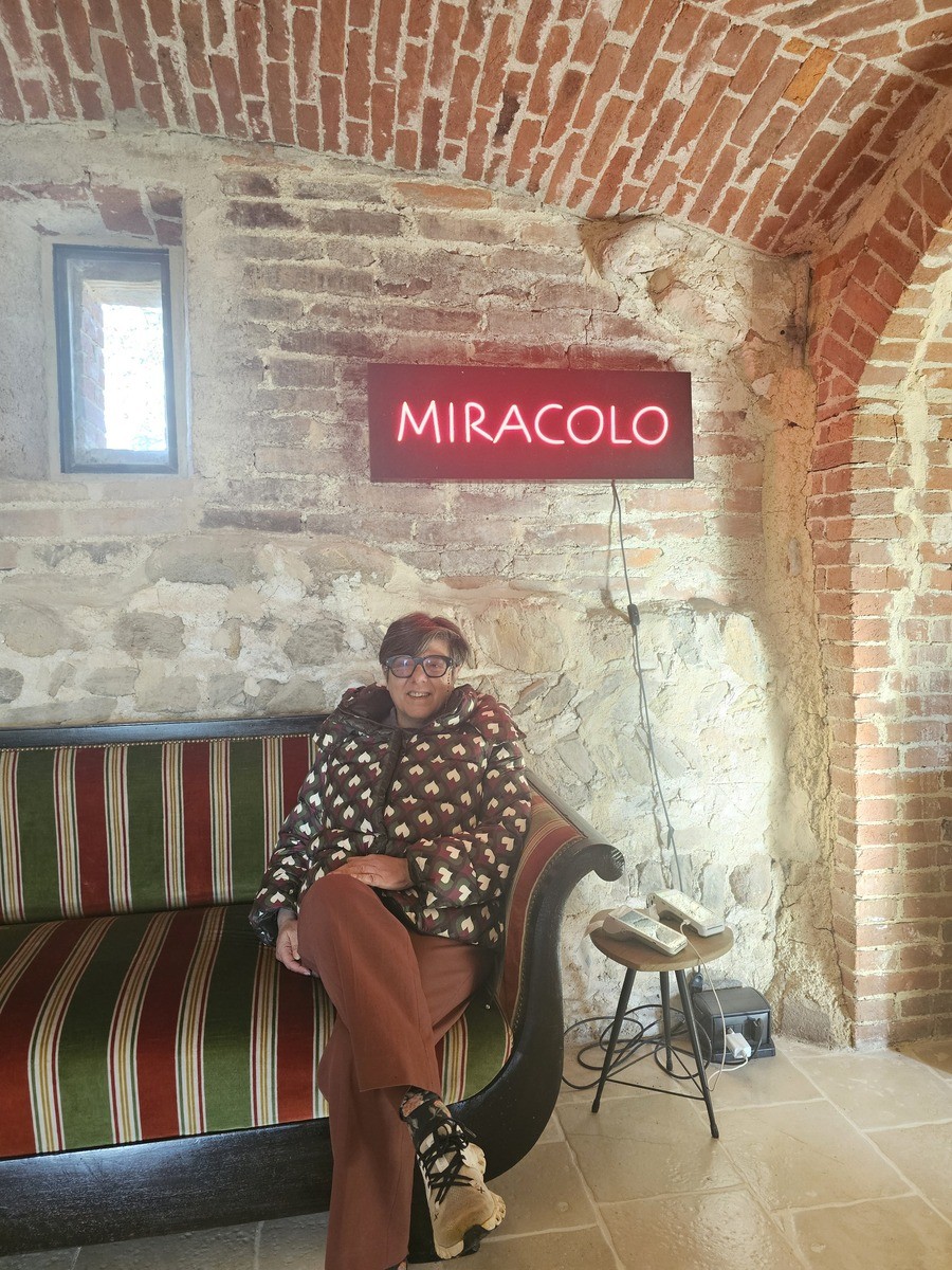 Quando ho finito l’intervista, siamo rimaste a parlare nel giardino. Davanti a noi il panorama si apriva, la luce era gentile. C’è stato un attimo di silenzio, e in quell’istante ho respirato qualcosa che da tempo cercavo. Pace. E per un momento, lo ammetto, ho avuto voglia di fermarmi anche io.