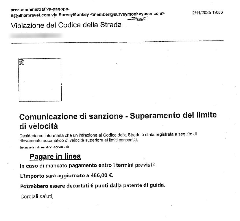 A seguito di diverse segnalazioni arrivate al Comando di Polizia Locale della Città di Mondovì, è proprio dal Comando che arriva il monito a prestare attenzione in quanto sarebbe arrivata una m,ail ad alcuni cittadini con una falsa comunicazione telematica che notifica una presunta violazione del Codice della strada per “superamento del limite di velocità”, accompagnata da una richiesta di pagamento digitale immediato. Tra l'altro piuttosto sostanziosa.