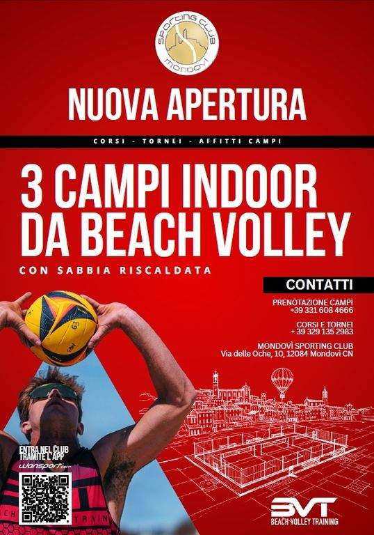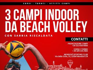 Cresce l’offerta dello Sporting Club Mondovì. Da sabato saranno disponibili tre nuovi campi indoor di beach volley. Un grosso investimento per la società sportiva monregalese, che ha convertito una tensiostruttura precedentemente utilizzata come campo da calcio a 7, in una moderna “spiaggia” per fare volley sulla sabbia.