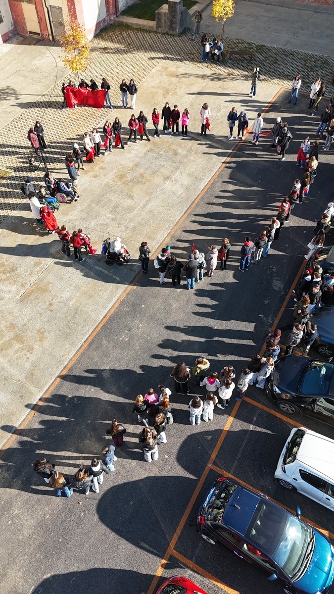 Al termine di questa prima fase, il corteo, cui si sono uniti volontari, familiari e amici degli utenti del centro diurno, educatori e utenti della cooperativa Proposta 80, del progetto Care Leavers e del Centro Famiglie, si è diretto nel cortile della Caserma Mario Musso per un flash mob organizzato dalle classi 5ªB e 5ªC. Qui la danza, i colori dei teli sventolati dai partecipanti e le parole forti della canzone sono stati elemento di incontro festoso, ma anche di riflessione su una tematica di cui spesso si sente parlare solo nei fatti di cronaca nera.