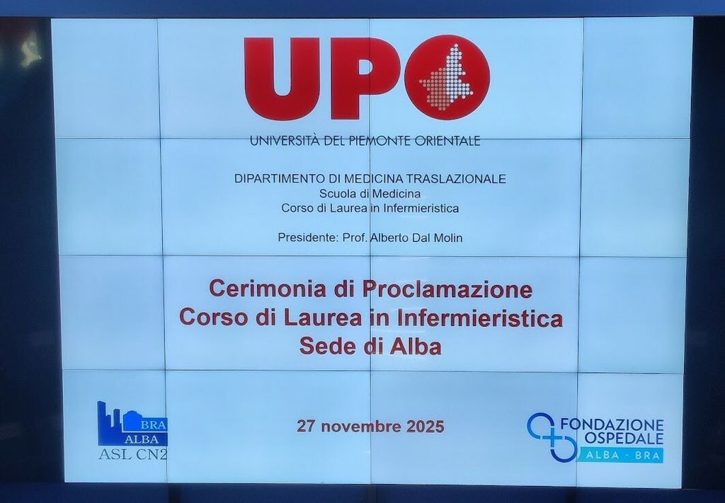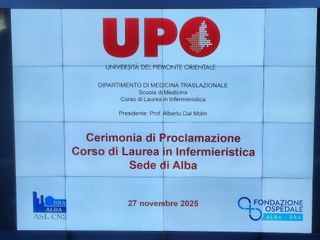Si è svolta oggi, nell’Auditorium dell’ospedale “Michele e Pietro Ferrero” di Verduno, la cerimonia di proclamazione dei primi laureati del Corso di Laurea in Infermieristica dell'Università Piemonte Orientale, sede di Alba.