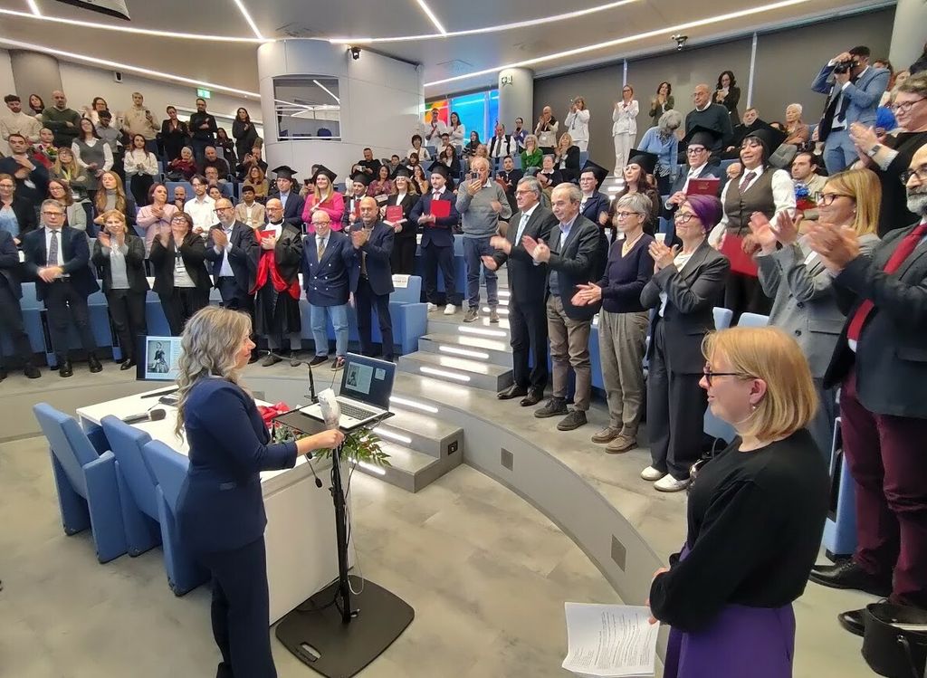 La cerimonia si è conclusa con la lettura del giuramento da parte della laureanda Maria Beatrice Carvutto a nome di tutti i colleghi, e con il tradizionale lancio del cappello.