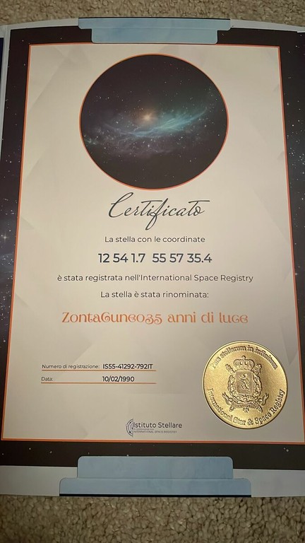 La ricorrenza sarà visibile anche nella nostra galassia - annuncia la presidente Silvia Quaranta - poichè ci siamo fatte dono di una stella rinominata “Zonta Cuneo35 anni di luce”.