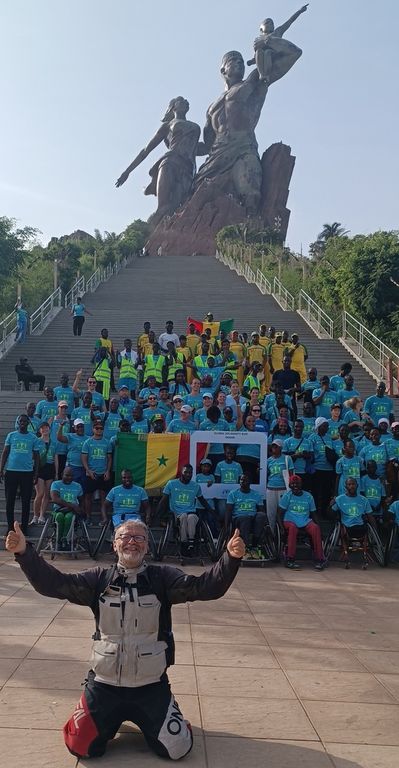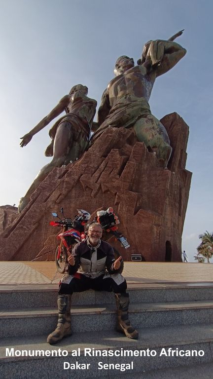 Il giorno dopo le nostre tre strade si sono divise, e finalmente ho raggiunto la mia meta. A Dakar ho sostituito la catena e fatto una piccola manutenzione alla moto. Qui si è avverato il mio sogno: fare una foto sotto il Monumento al Rinascimento Africano. Ho ringraziato la gendarmeria per avermi concesso la salita fin sotto il monumento.