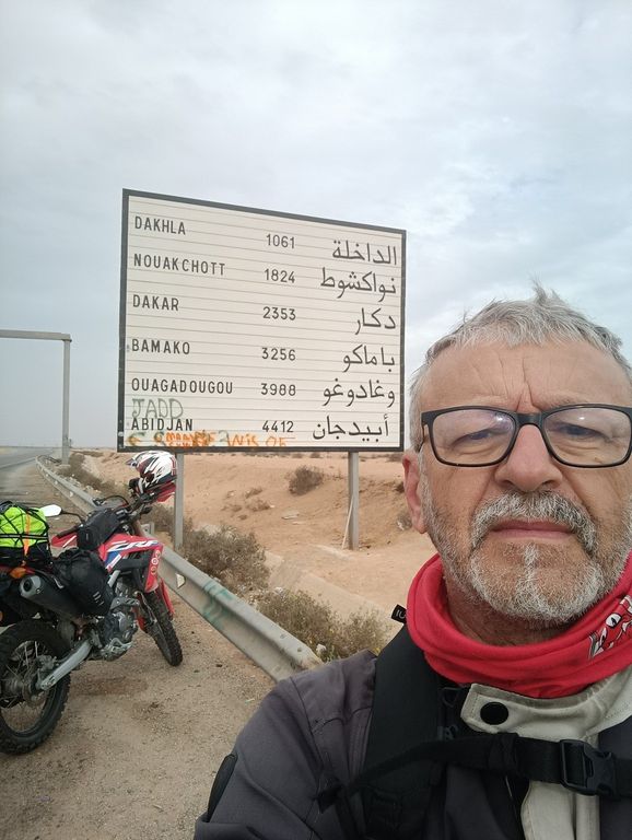All’andata ho preso il traghetto a Genova per Tangeri in Marocco, in compagnia di due miei amici, Gianpietro e Bruno. Con loro ho condiviso i primi tre giorni di viaggio e, arrivati ad Agadir (Marocco), le nostre strade si sono divise. Ho continuato da solo verso Dakar (Senegal), con l’obiettivo di scattare una foto davanti al Monumento al Rinascimento africano.