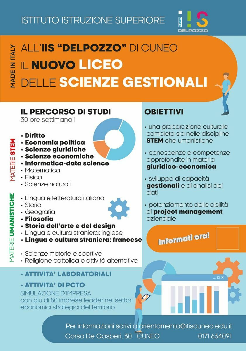 L’IIS Delpozzo di Cuneo inaugura una nuova frontiera dell’istruzione con l’attivazione del Liceo delle Scienze Gestionali, a partire dall’anno scolastico 2026/2027. Questo percorso nasce dall’intento di coniugare tradizione e futuro, unendo umanesimo, tecnologia e sensibilità imprenditoriale in un contesto pensato per valorizzare il territorio e il vero spirito del Made in Italy.