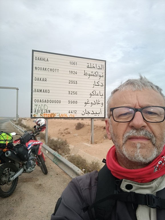 All’andata ho preso il traghetto a Genova per Tangeri in Marocco, in compagnia di due miei amici, Gianpietro e Bruno. Con loro ho condiviso i primi tre giorni di viaggio e, arrivati ad Agadir (Marocco), le nostre strade si sono divise. Ho continuato da solo verso Dakar (Senegal), con l’obiettivo di scattare una foto davanti al Monumento al Rinascimento africano.