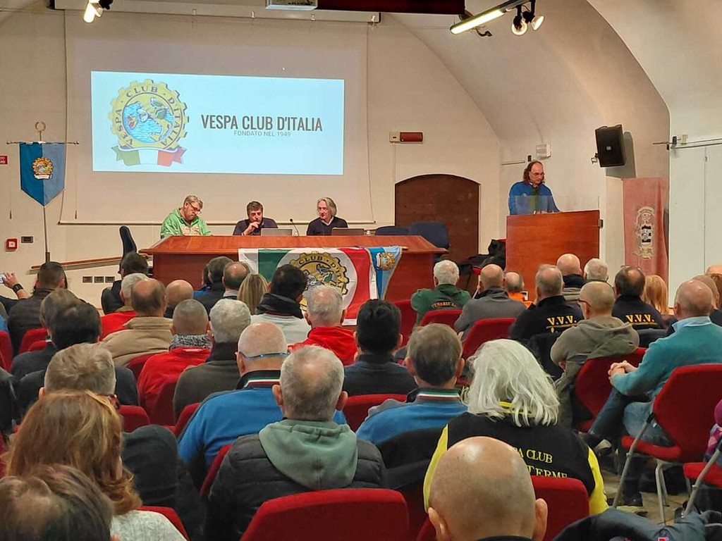 I lavori sono stati aperti dal saluto istituzionale della vice sindaca Rattalino, che ha invitato i presenti a scoprire le bellezze della città. A seguire, si sono alternati alla conduzione i rappresentanti del Consiglio Direttivo del Vespa Club d’Italia: il vicepresidente Stefano Crociani, il tesoriere Frederick Rosso e Jean Claude Aiazzi, membro del Collegio dei Revisori dei Conti.