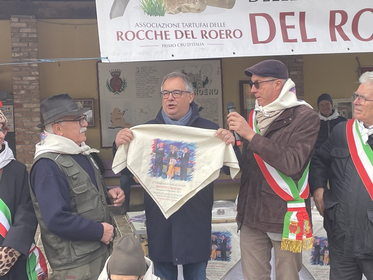 Tutti per il tartufo e il tartufo per tutti, purché sia bianco d’Alba, e se poi sconfina nel Roero o nel Monferrato, sarà pur sempre il benvenuto, augurio quest’ultimo tributato domenica 30 novembre soprattutto al conduttore televisivo di Canale 5 Valerio Staffelli che, dalle mani del sindaco di Monteu Roero Paolo Rosso, ha ricevuto il Tartufo Bianco d’Alba Rocche del Roero 2025.