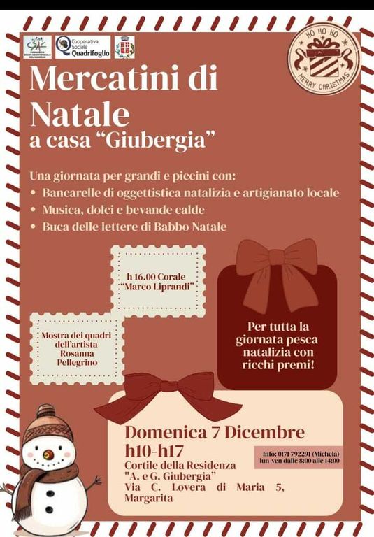 Anche quest'anno si ripeterà la felice iniziativa del “mercatino di Natale” nello spazio aperto antistante la casa di riposo “Giubergia” a Margarita.