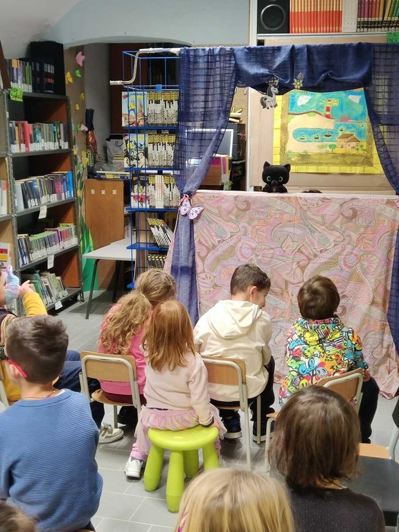 La direttrice, Sara Rossi, ringrazia Ebe e le volontarie Sandra, Francesca e Ivana che hanno collaborato alla creazione della scenografia e tutti i volontari della biblioteca che dedicano tanto tempo e tanta energia per trasmettere la passione per la lettura soprattutto ai più piccoli.