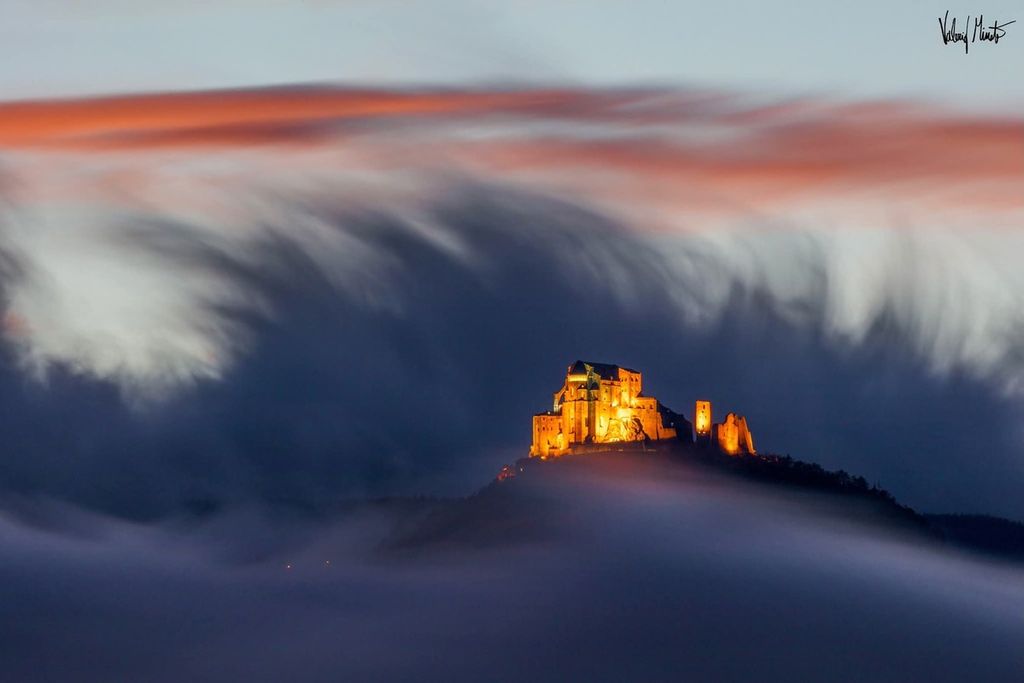Lo spettacolare tsunami di nuvole sulla Sacra di San Michele