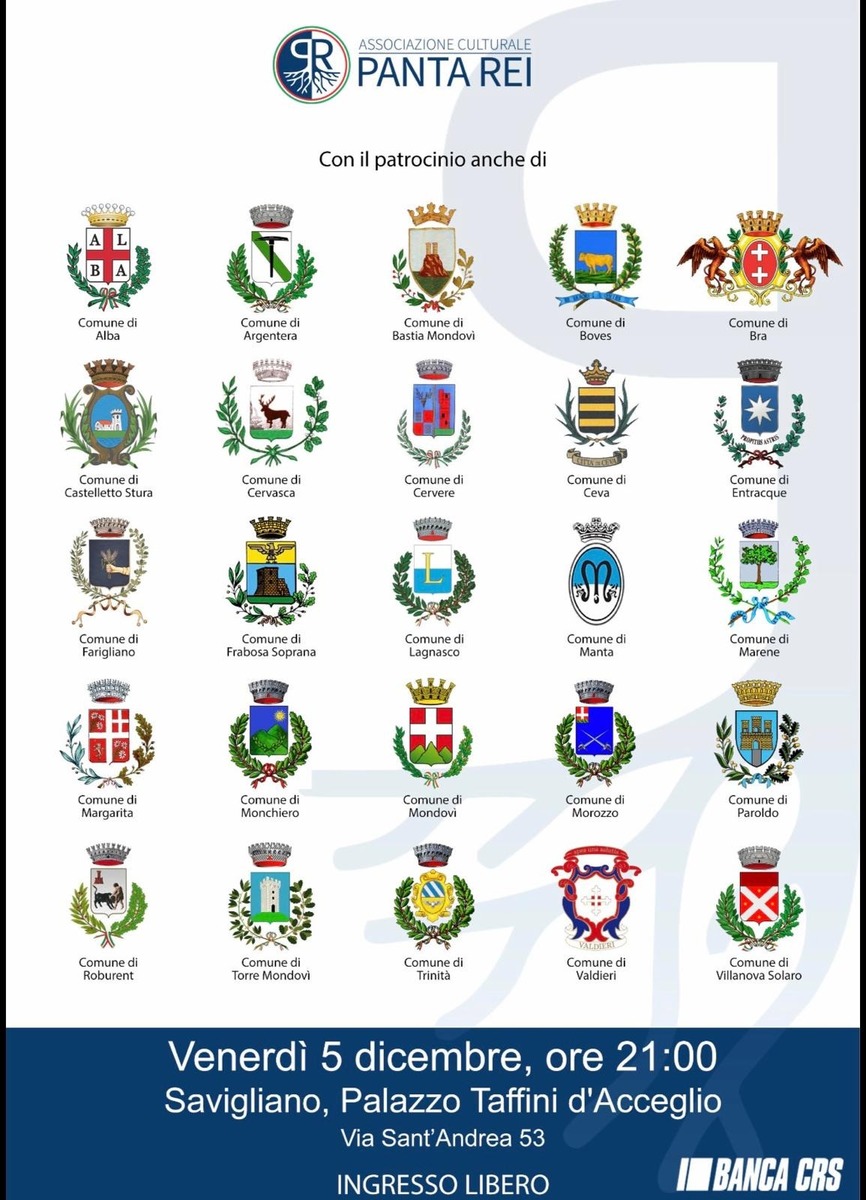 L’evento, dati gli scopi e le finalità sociali perseguiti dall’associazione (promuovere una cultura della responsabilità condivisa e di cooperazione che coinvolga tutti i cittadini), sarà patrocinato da: Consiglio Regionale del Piemonte - Comitato regionale per i Diritti Umani e Civili - Provincia di Cuneo - e dai Comuni di: Savigliano, Alba, Argentera, Bastia, Belvedere Langhe, Bene Vagienna, Boves, Bra, Castelletto Stura, Cervasca, Cervere, Ceva, Dogliani, Entracque, Farigliano, Frabosa Soprana, Lagnasco, Manta, Marene, Margarita, Mondovì, Monasterolo di Savigliano, Monchiero, Mondovì, Morozzo, Paroldo, Piozzo, Roaschia, Roburent, Torre Mondovì, Trinità, Valdieri, Villanova Solaro e della Banca CRS (Cassa di Risparmio di Savigliano)