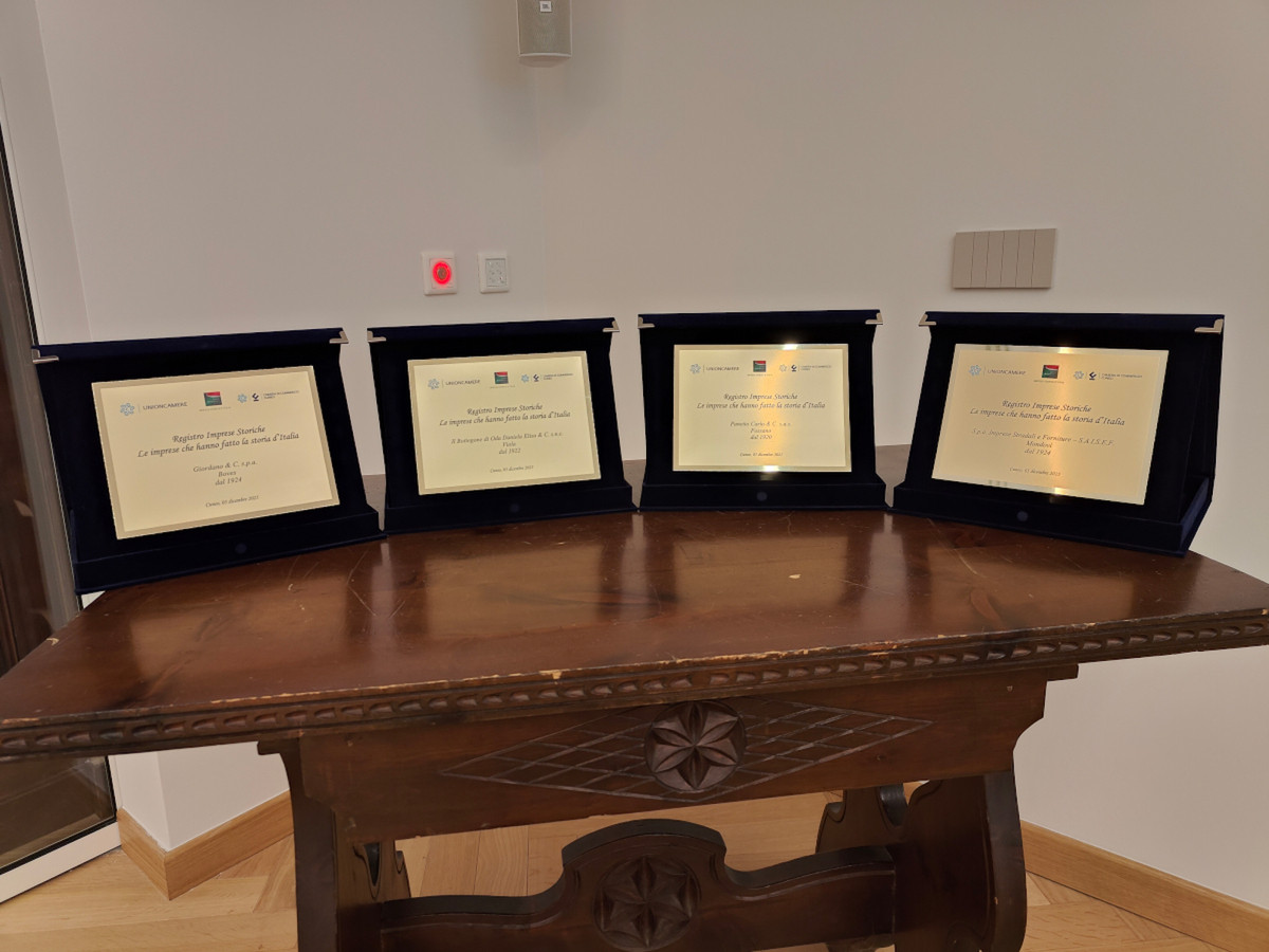 Stamattina, nel Salone Consiliare della Camera di commercio di Cuneo, alla presenza di numerose autorità, sono state premiate quattro nuove imprese che sono entrate a far parte del Registro Nazionale delle Imprese Storiche, istituito nel 2011 da Unioncamere nazionale, allora presieduta da Ferruccio Dardanello.