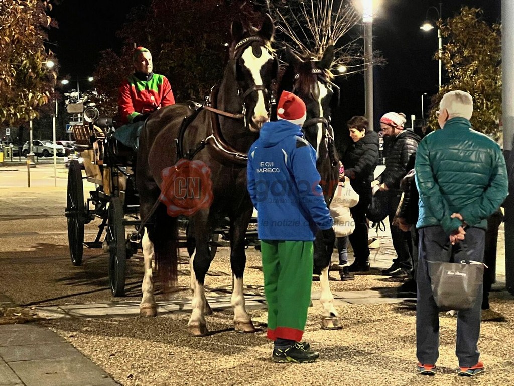 Il vero “padrone di casa” è il maxi Babbo Natale, alto 10 metri. Per piccoli e famiglie, inoltre, è stata messa a disposizione una carrozza trainata da cavalli con Babbo Natale.