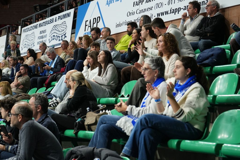 Quasi 2600 tifosi hanno colorato le tribune di entusiasmo e cori, accompagnando Cavaccini e compagni in ogni azione. Nemmeno il doppio svantaggio ha spento la fiamma del tifo biancoblu, culminata nella fiammata del terzo set, conquistato dai cuneesi grazie anche alla spinta inarrestabile del pubblico.