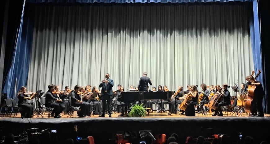 Giuseppe Favata, protagonista del “Concerto in mi bemolle maggiore per tromba e orchestra di Hummel”, eseguito con brillantezza, sicurezza e un controllo perfetto, tutto senza leggere lo spartito.