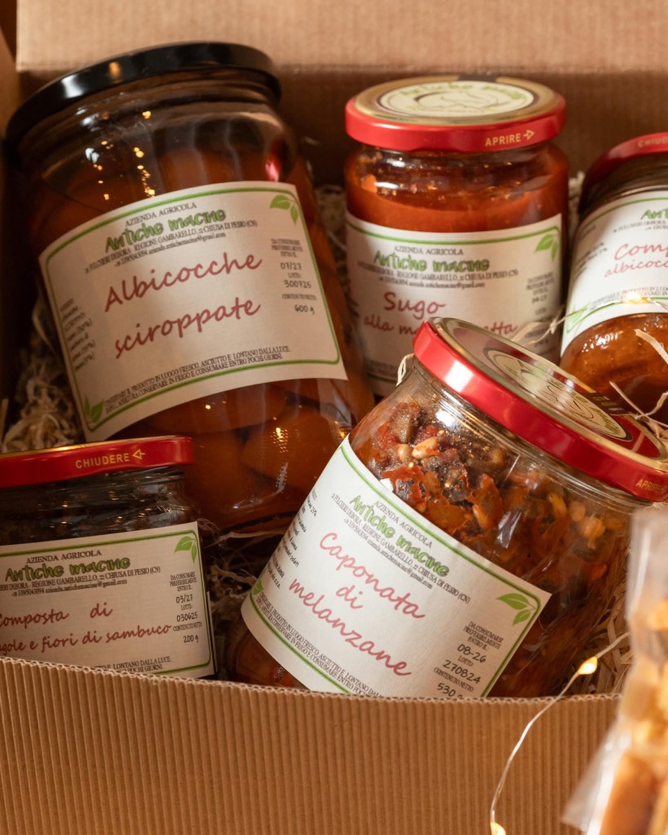 Da Antiche Macine ci sono anche molti prodotti che si possono trovare principalmente in azienda, dove è possibile anche comporre pacchi regalo natalizi e cesti su misura. Ma c’è anche una vetrina “urbana”: la Bottega Contadina a Mondovì, gestita da un gruppo di produttori locali.