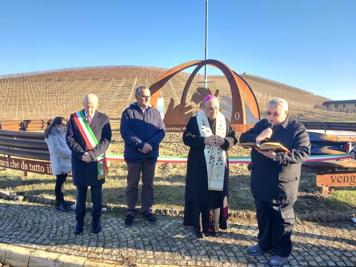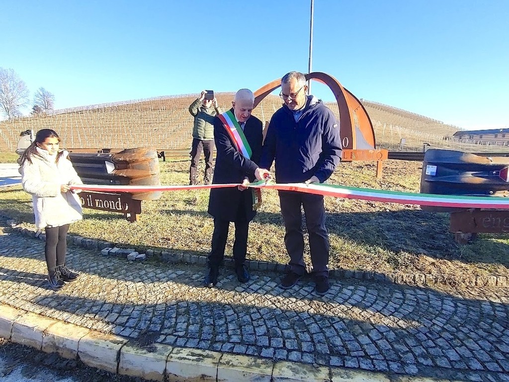 Inaugurata nel pomeriggio di oggi lunedì 8 dicembre, presso la rotatoria all’incrocio tra le provinciali 3 e 125, in via Alba-Barolo nel comune di Serralunga d’Alba, l’opera artistica intitolata 'Alle mani che da tutto il mondo vengono a lavorare le nostre vigne' realizzata in acciaio inox e corten dall’artista Giuliano Stella.