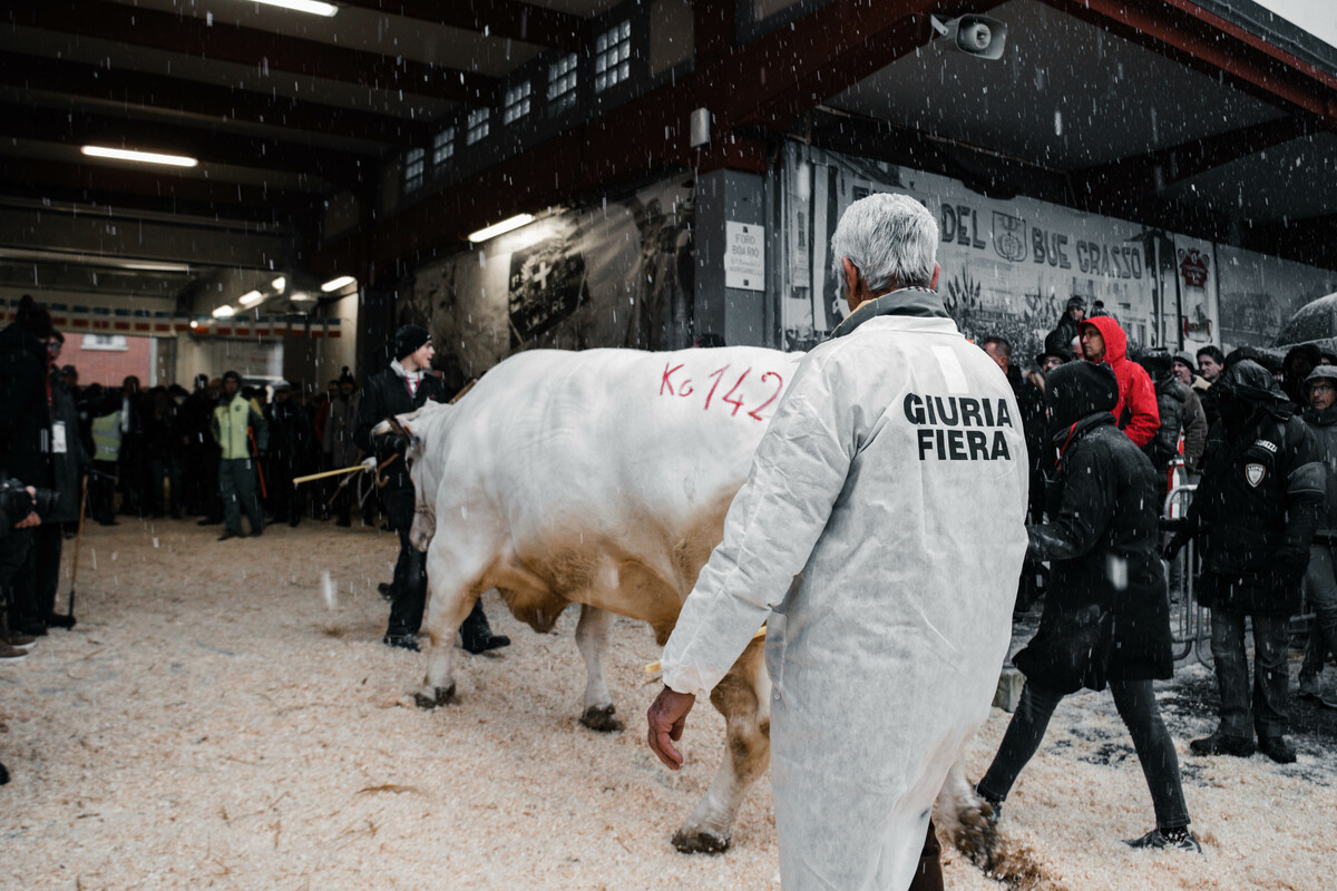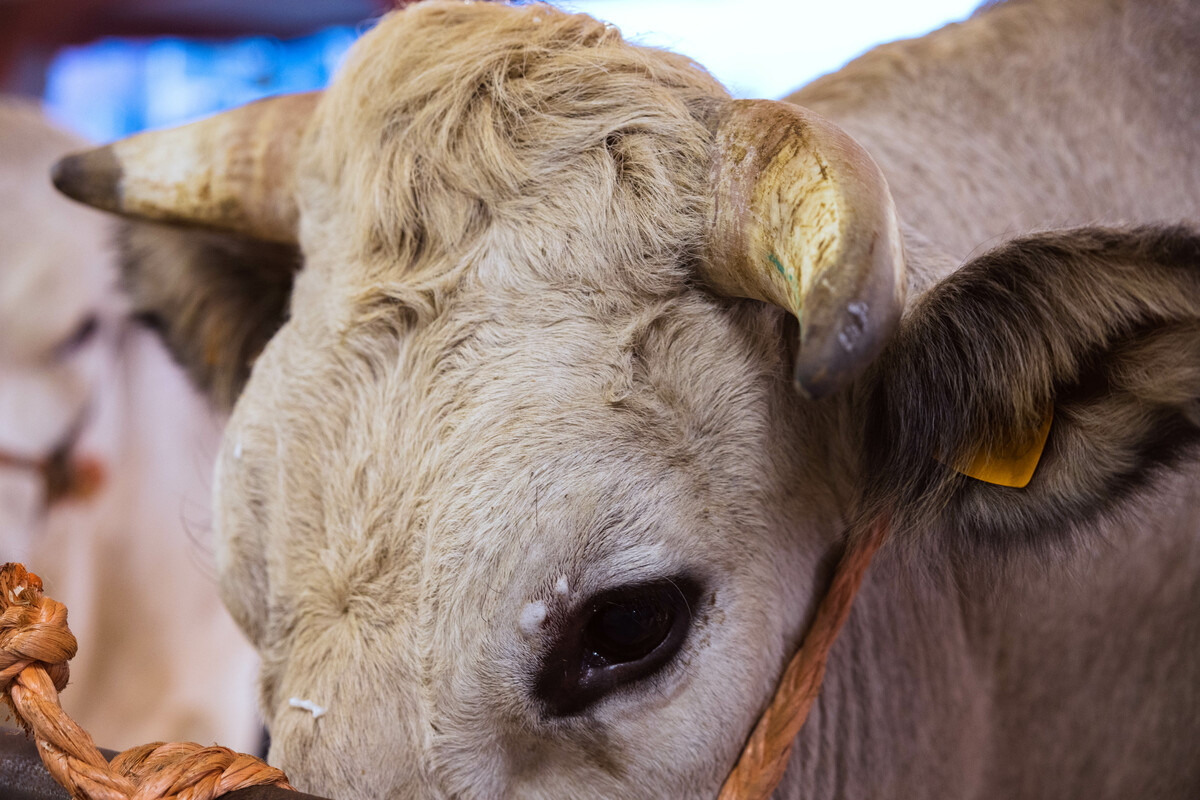 Al centro della Fiera c’è lui: il bue grasso, animale maestoso e simbolo della razza Piemontese, considerata una delle più pregiate al mondo per qualità delle carni.